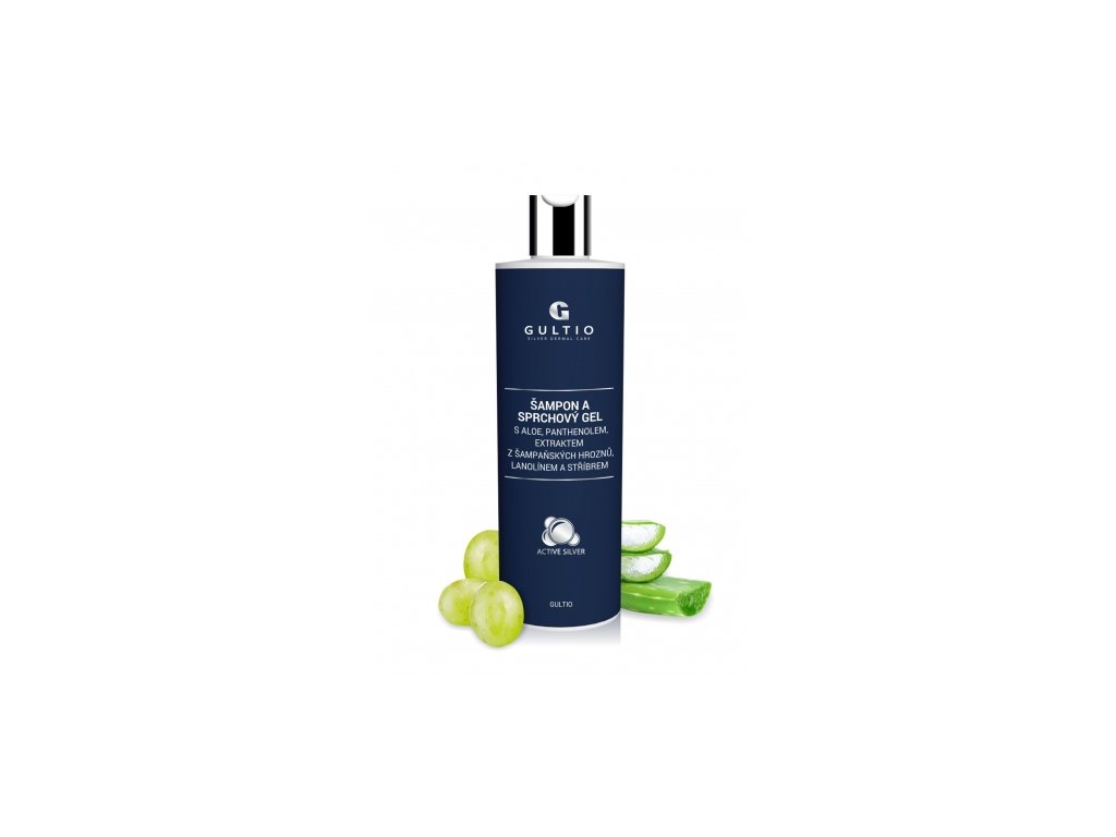 ŠAMPON A SPRCHOVÝ GEL s aloe, panthenolem, extraktem z šampaňských hroznů, lanolínem a stříbrem